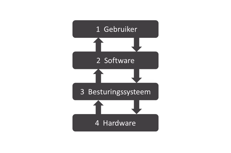 Elke vorm van automatisering c.q. ICT bestaat uit vier lagen. Of het nu gaat om uw thuiscomputer, uw smartphone of om de auto waarin u rijdt. De volgende ICT-lagen vormen altijd de basis voor elke vorm van automatisering: